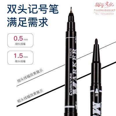 齐心(Comix)小双头防水速干勾线笔油性笔物流记号笔大头笔马克笔12支/盒 工具 黑色 EM829 SKU:yzwhyp204256
