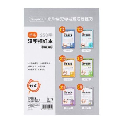 广博(GuangBo)B5人教版 同步语文楷书汉字 小学生硬笔书法练字帖(三年级下)36张FB60088 SKU:yzwhyp204294