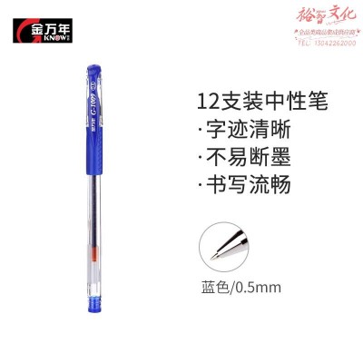 金万年(Genvana) 中性笔书写考试 学生用签字笔 签约笔 教师专用批改 0.5mm-蓝色 (12支装)G-1009-002 SKU:yzwhyp204323