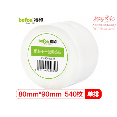 得印(befon)不干胶标签纸 铜版纸80mm*90mm 540枚单排 打印贴纸 SKU:yzwhyp322682