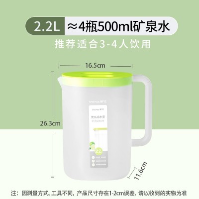 茶花(CHAHUA) 冷水壶塑料家用凉水壶果汁壶大容量杯子耐热耐高温凉水杯茶壶 2.2L绿色 SKU:yzwhyp204394