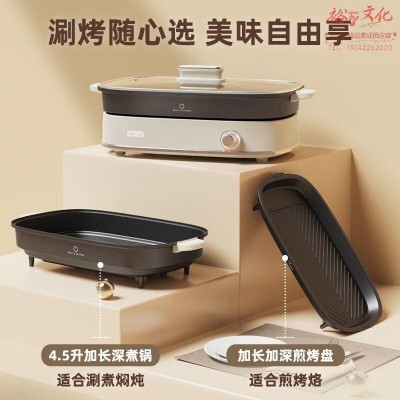 小熊(Bear)多功能料理锅 烤鱼锅 烤涮一体两用锅 电火锅烤肉锅多用途锅家用火锅锅 DHG-D45G5 4.5L SKU:yzwhyp322719