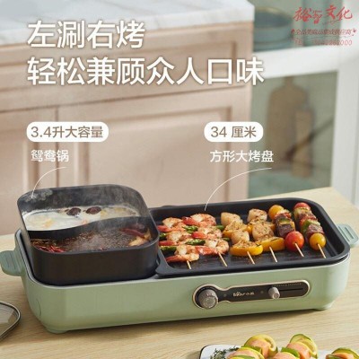 小熊(Bear)烤涮一体两用锅烤肉火锅一体家用涮烤一体火锅烤盘电烤盘多功能锅电火锅电烧烤炉 DKL-C16C1 SKU:yzwhyp322743