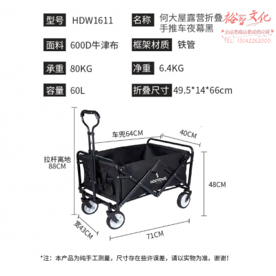 何大屋露营装备 野餐营地车 折叠手推车 60L 600K牛津布 夜幕黑HDW1611 SKU:yzwhyp322889
