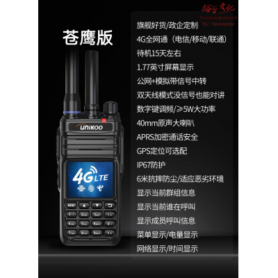 首页 > 广播、电视、电影设备 > 组合音像设备 > 会议、广播及音乐欣赏系统 > UNIKOO 对讲机远距离5000公里全国通双模公网对讲机 工地户外酒店饭店宾馆办公自驾游民用手台 双模苍鹰(4G全网通+公模两用中转)免续费 SKU:yzwhyp322897