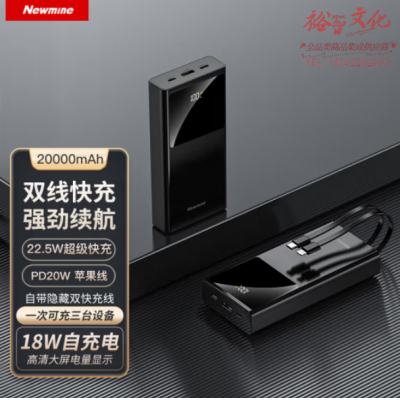 纽曼(Newmine) AL13自带线快充充电宝20000毫安时 22.5W 苹果Type-c 黑 SKU:yzwhyp111309
