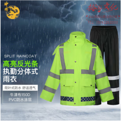 神龙 交通执勤分体式雨衣 环卫劳保防汛防寒骑行成人分体雨衣反光雨衣雨裤套装 执勤雨衣150D SKU:yzwhyp323087