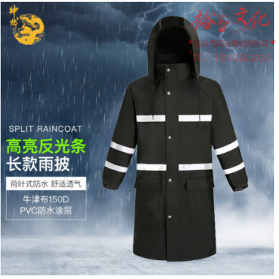 神龙 连体雨衣 加长荧光绿长款反光保安巡逻交通执勤劳保路政铁路施工警示雨披 长款150D黑色 SKU:yzwhyp323089