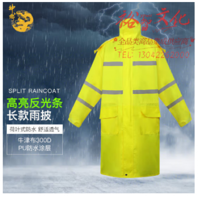 神龙 连体雨衣 加长荧光绿长款反光保安巡逻交通执勤劳保路政铁路施工警示雨披 长款300D黄色 SKU:yzwhyp323092