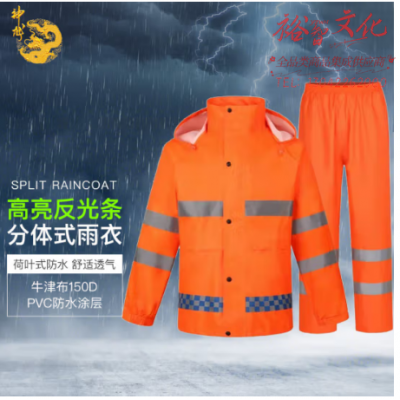 神龙 成人分体式雨衣 防汛雨衣摩托车骑行外卖加厚雨披 男女式反光雨衣雨裤套装 150D橙色 SKU:yzwhyp323097