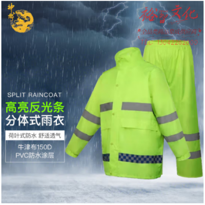 神龙 成人分体式雨衣 防汛雨衣摩托车骑行外卖加厚雨披 男女式反光雨衣雨裤套装 150D绿色 SKU:yzwhyp323098