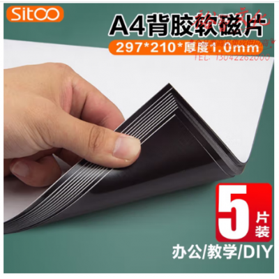 SITOO斯图软磁片磁铁贴A4可裁剪磁力贴自制教学教具强力磁条贴磁力手工DIY磁条 (带背胶)A4*1.0mm厚 5片 SKU:yzwhyp323127