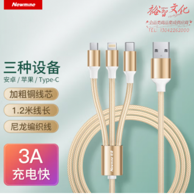 首页 > 信息化设备 > 数据线 > 纽曼(Newmine)XS06 苹果/Type-c/安卓USB-C一拖三数据线三合一充电线 适用iPhoneX/XS Max/XR/小米华为p30 金色 SKU:yzwhyp111327