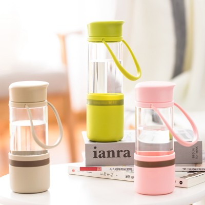 茶花(CHAHUA) 水杯玻璃杯便携密封带盖防漏玻璃杯子办公室男女士运动过滤水杯 绿色1个 400ml SKU:yzwhyp204402