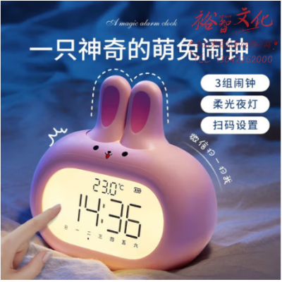 夕风闹钟学生专用起床神器女孩儿童电子小夜灯小闹铃大声桌面时钟可爱 SKU:yzwhyp323236