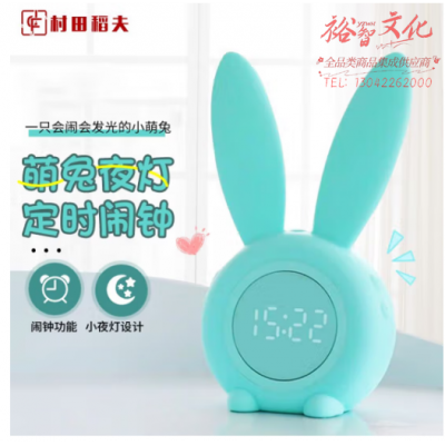村田稻夫电子闹钟学生专用起床神器儿童智能闹钟夜灯闹铃萌兔闹钟开学礼物 绿色 SKU:yzwhyp323291