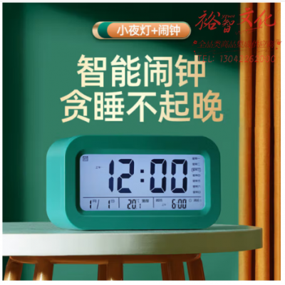 板谷山电子闹钟电池款创意儿童学生用闹铃智能感光三组小闹铃 孔雀绿 SKU:yzwhyp323301
