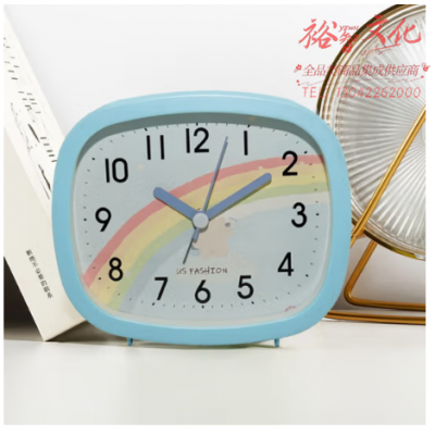 秘禧卡通闹钟学生专用起床神器桌面电子时钟儿童闹钟指针石英钟表 彩虹闹钟【蓝色】 SKU:yzwhyp323333