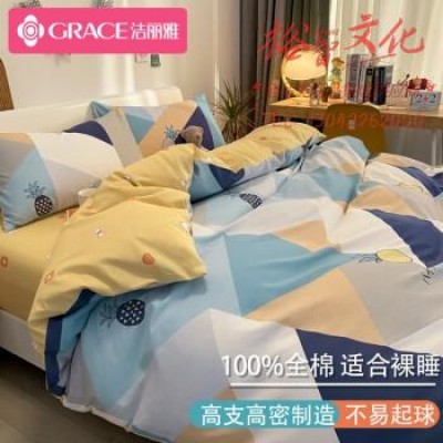 洁丽雅全棉四件套 纯棉被套床单家用被罩床上套件 菠萝多多1.5/1.8米床 SKU:yzwhyp111498