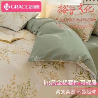 洁丽雅纯棉四件套100%全棉被套床单枕套床上用品套件 绿茵1.5/1.8米床 SKU:yzwhyp111500 - 天津市裕智文化用品销售有限公司