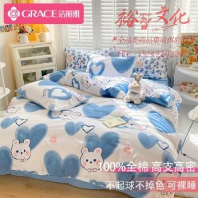 洁丽雅纯棉四件套100%全棉被套床单枕套床上用品套件爱心兔1.5/1.8米床 SKU:yzwhyp111501