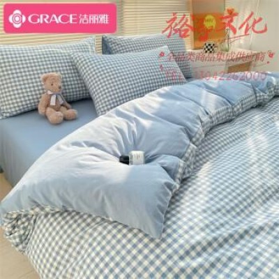 首页 > 装具 > 床褥单 > 洁丽雅纯棉四件套100%全棉被套床单枕套床上用品套件 蓝小格1.5/1.8米床 SKU:yzwhyp111506