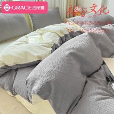 洁丽雅 全棉四件套纯棉A类被罩床单床上用品套件 华夫格中灰1.5/1.8米床 SKU:yzwhyp111519