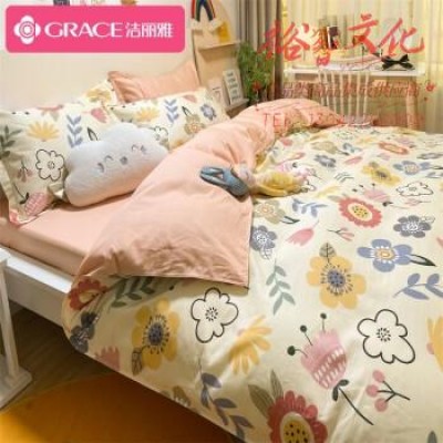 洁丽雅纯棉四件套100%全棉被套床单枕套床上用品套件春天里1.8/2.0米床 SKU:yzwhyp111565