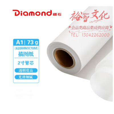 钻石 A1硫酸纸拷贝纸 透明描图纸 73g制版转印纸 绘图纸草图纸 卷装(620mm*70米) SKU:yzwhyp323951