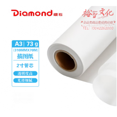 钻石 天然描图纸硫酸纸卷装A3透明拷贝纸73克 310mm*70米 SKU:yzwhyp324037