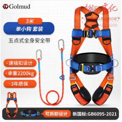 Golmud五点式全身安全带防坠落高空作业国标保险带GD3697单小钩3米 SKU:yzwhyp324055