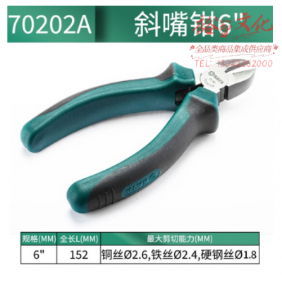 世达(SATA)工具钳子 斜嘴钳断线钳斜口钳偏口钳 6"斜嘴钳 70202A SKU:yzwhyp324178