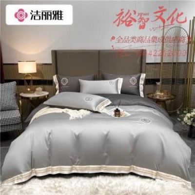洁丽雅四件套 刺绣纯色床单被套床上用品 莎-浅灰 2*2.3M 1.5m/1.8床 SKU:yzwhyp111630