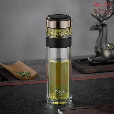 特美刻(TOMIC) 玻璃杯男双层防烫便携水杯茶水分离银茶隔泡茶杯 TG80708Y黑色 SKU:yzwhyp204512