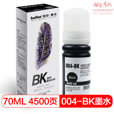 首页 > 办公用品 > 墨水 > befon得印 004系列墨仓式黑色墨水 适用爱普生EPSON L1118 1119 3108 3118 3119 3158 5198 SKU:yzwhyp324777