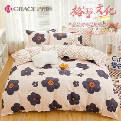 洁丽雅(Grace)亲肤四件套1.2/1.5米床上用品被单床单枕套被套150*200cm沉醉花开 SKU:yzwhyp111722