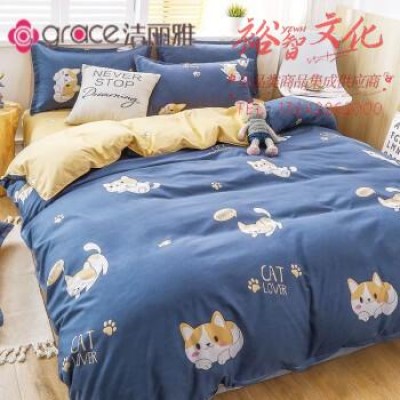 首页 > 装具 > 床褥单 > 洁丽雅(grace)床上四件套被套床单被子四季通用单人宿舍床三四件套网红款 淘气猫-蓝 2.2米床【1床单+1被套+2枕套】 SKU:yzwhyp111733