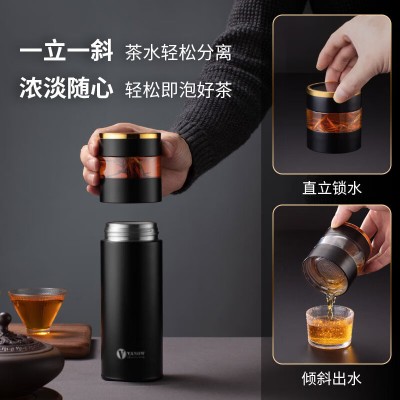 Vanow 智能纯银保温杯男女999银水杯子高档茶水分离纯银内胆便携泡茶杯 睿智黑(999足银)VO-PN-450Y SKU:yzwhyp204644