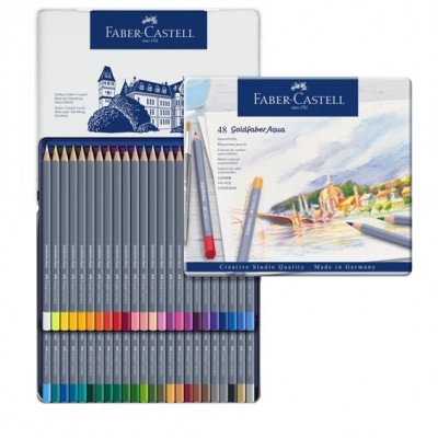 辉柏嘉(Faber-castell)水溶性彩铅笔48色专业手绘美术蓝铁盒彩色铅笔Goldfaber Aqua系列114648
