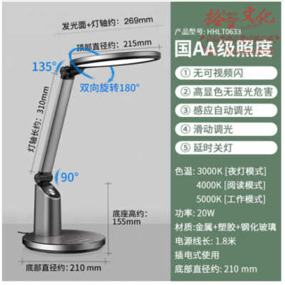 松下台灯减蓝光国AA级高显色护眼台灯学习智能感光台灯 致巡黑 HHLT0633L SKU:yzwhyp324923