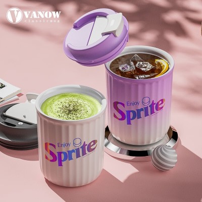 Vanow Kids 雪碧联名咖啡杯保温杯随行女高颜值陶瓷内胆学生水杯子 活力黄【陶瓷内胆】 360ml SKU:yzwhyp204651