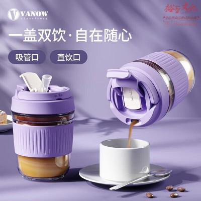Vanow 玻璃杯水杯带吸管便携可爱泡茶杯大容量咖啡杯子 抹茶绿460ml SKU:yzwhyp204657