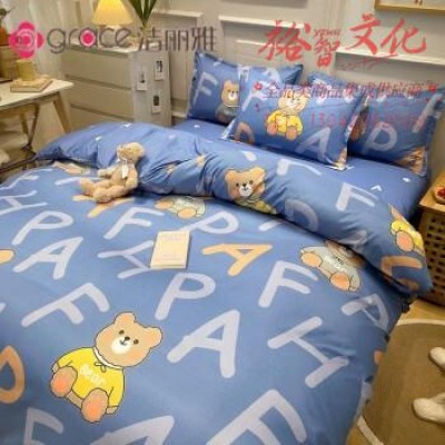 洁丽雅(grace)床上四件套被套床单被子四季通用单人宿舍床三四件套网红款 字母熊-蓝 2.2米床【1床单+1被套+2枕套】 SKU:yzwhyp111749