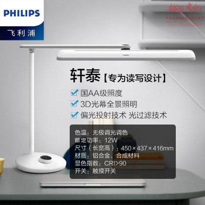 飞利浦护眼台灯国AA级学生儿童阅读学习LED台灯钢琴灯轩泰 白 SKU:yzwhyp324932