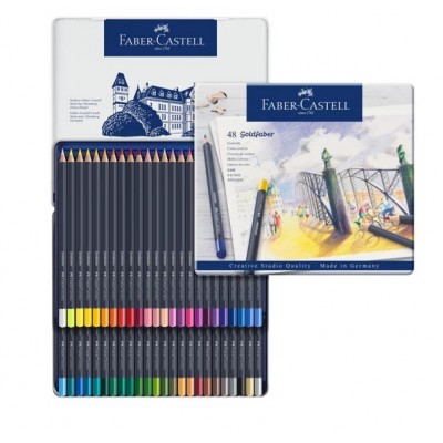 辉柏嘉(Faber-castell)油性彩铅笔48色专业手绘美术蓝铁盒彩色铅笔Goldfaber Aqua系列114748