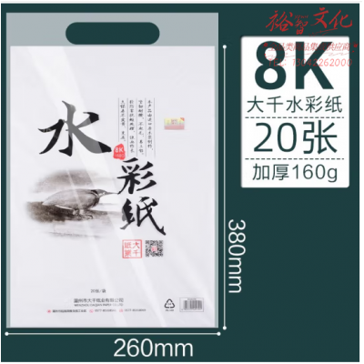 首页 > 纸及纸质品 > 纸及纸板(不包含复印纸) > 大千素描纸8K/4K水粉纸 加厚铅画纸 8开白色水彩纸(20张/袋) SKU:yzwhyp325003