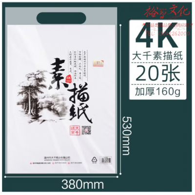 首页 > 纸及纸质品 > 纸及纸板(不包含复印纸) > 大千素描纸 美术生专加厚铅画纸 4开白色素描纸(20张/袋) SKU:yzwhyp325008