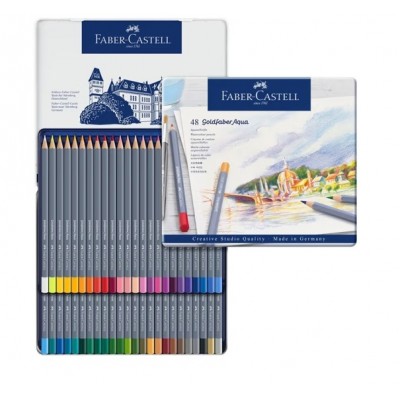 辉柏嘉(Faber-castell)水溶性彩铅笔48色专业手绘美术蓝铁盒彩色铅笔Goldfaber Aqua系列114648
