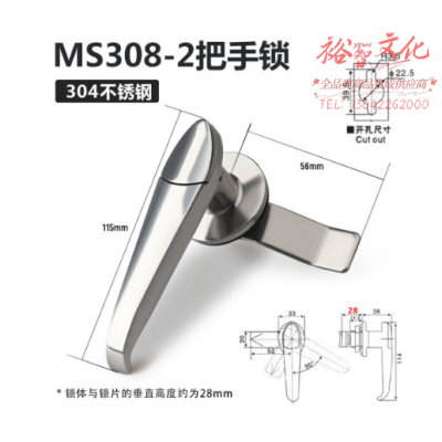 佐痕不锈钢户外配电柜把手锁机箱机柜门锁工业柜锁执手锁 MS308-2铜锁芯/通开 SKU:yzwhyp325117