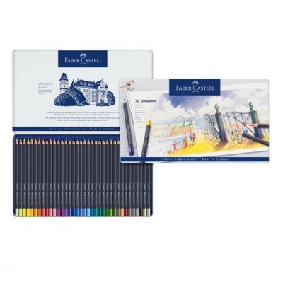 辉柏嘉(Faber-castell)油性彩铅笔36色专业手绘美术蓝铁盒彩色铅笔Goldfaber Aqua系列114736